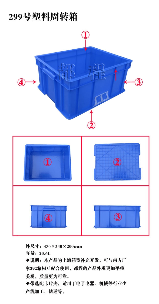 - 編號: - X299 - 外尺寸(mm): - 430*340*200 - 內(nèi)尺寸(mm): - 392*305*190 - 內(nèi)容積(L): - 20.6 - 備注: - 可選配卡片夾。適用于電子電器、機械等行業(yè)加工、儲運。